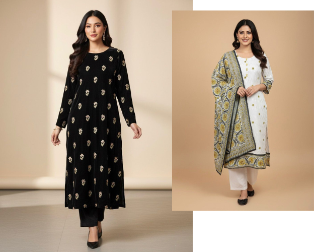 Each piece in our collection is a celebration of artistry. We weave together traditional craftsmanship with contemporary silhouettes, creating garments that are both timeless and modern.
